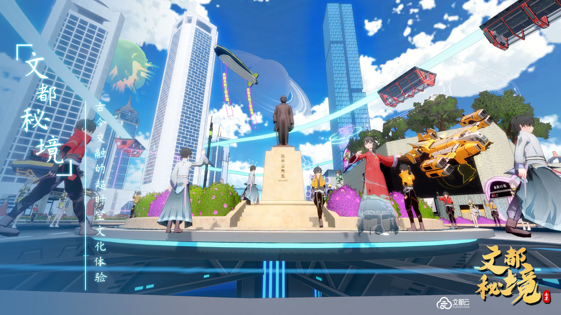 “文都秘境”是首个城市文旅元宇宙场景体验平台,利用3D建模渲染、多人实时在线等技术,以真实的南京城市为蓝本,以南京历史文化资源大数据平台积累的丰厚文化数据为基础,打造一个古今融合交错的未来城市文化空间样本。